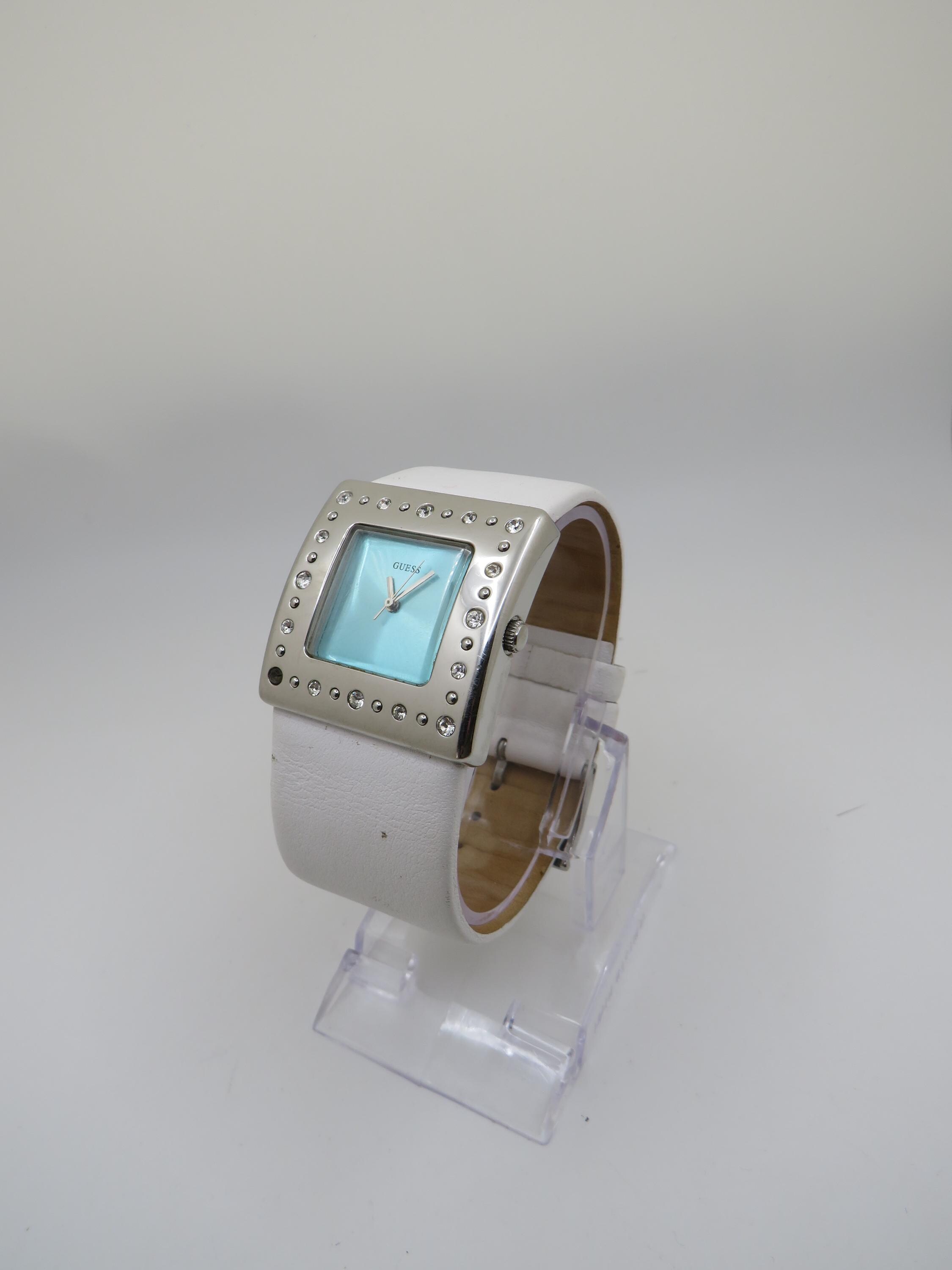 white watch with diamond style dial