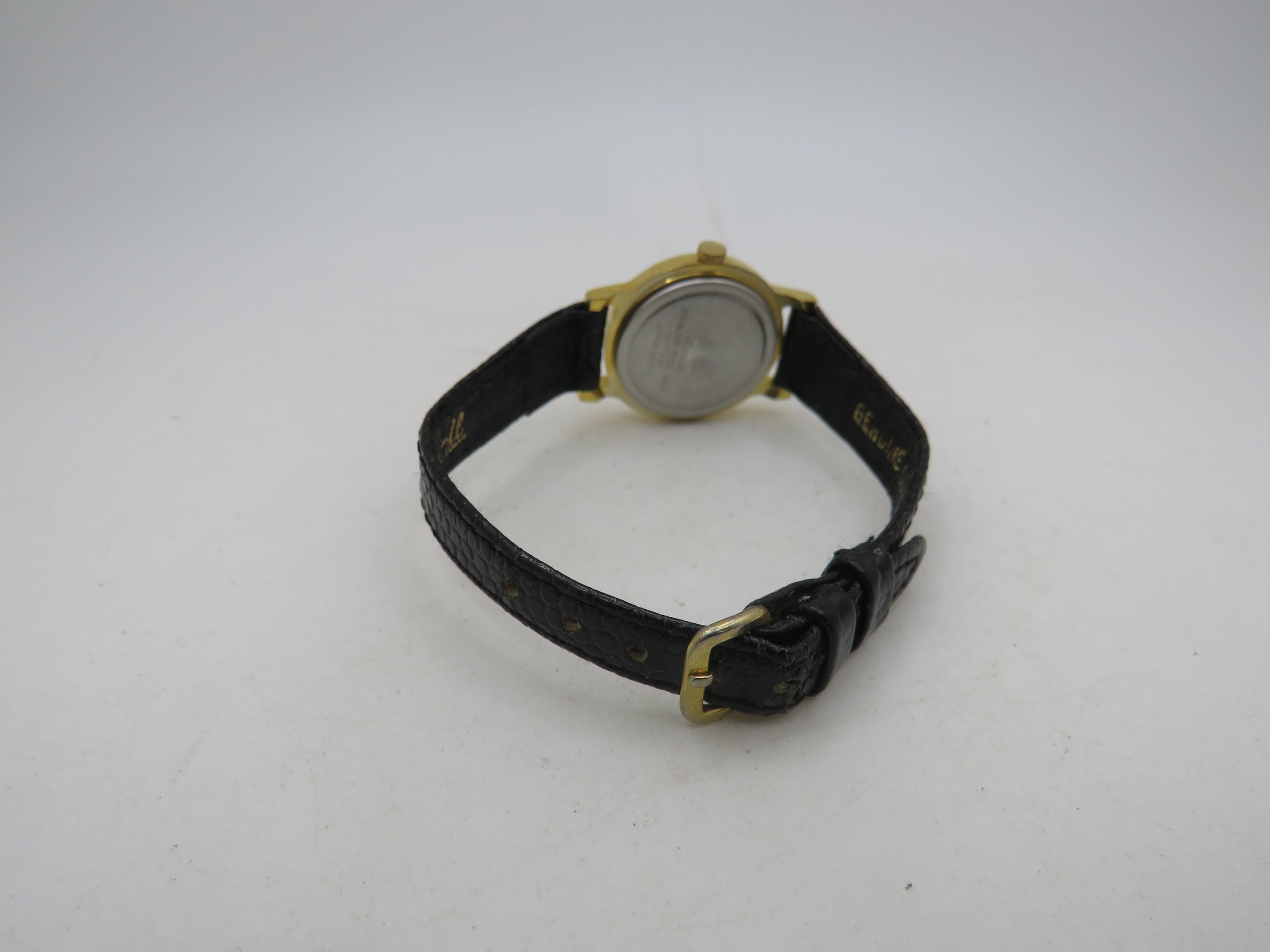 Vintage watch, Gold plate Finish, black Leather Strap (T19)
