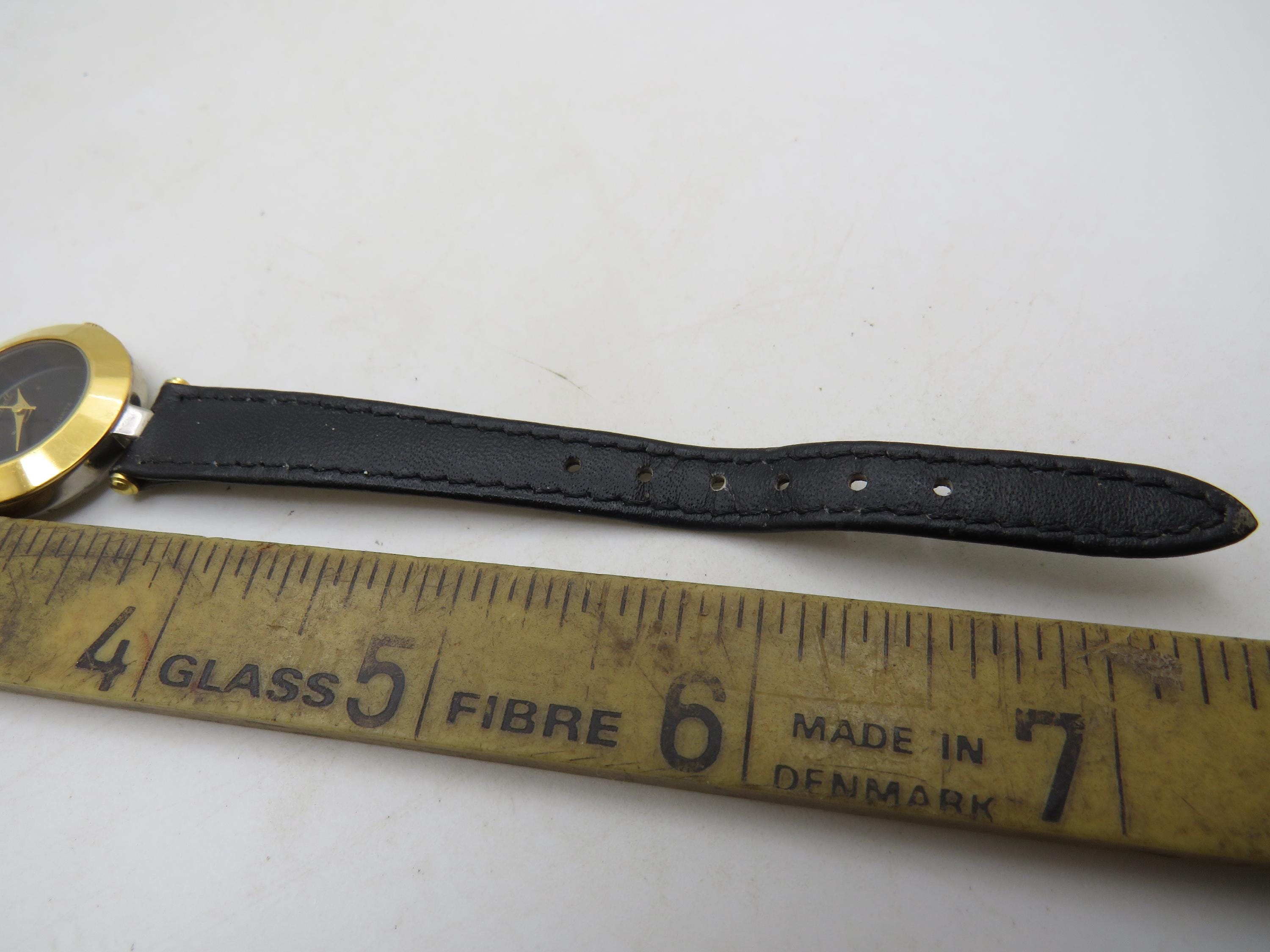 Vintage diamond watch, Gold plate Finish, black dial Leather Strap (s14)