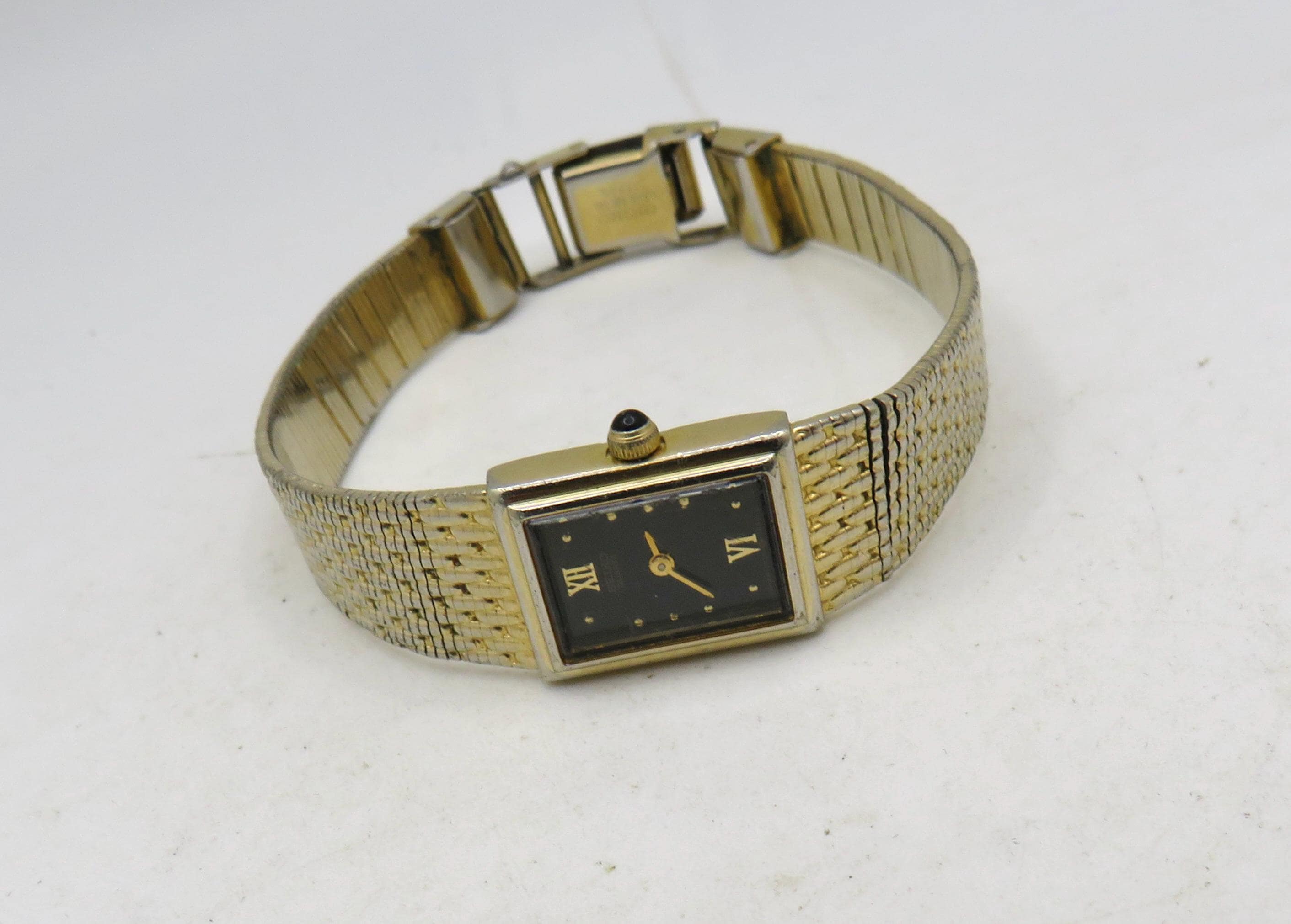 Vintage Gold Plated Citizen Rectangle Watch – Tank Dial, 6.8" Band (a14)